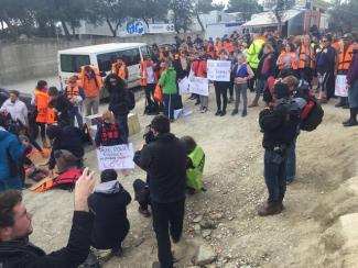 Με μεγάλη συμμετοχή εθελοντών και αλληλέγγυων ολοκληρώθηκε η διαμαρτυρία που οργανώθηκε το μεσημέρι στο κέντρο κράτησης της Μόριας στη Μυτιλήνη, με αίτημα ν' ανοίξουν τα σύνορα για τους πάνω από 1.000 πρόσφυγες/μετανάστες που τελούν υπό καθεστώς προσωρινής κράτησης ή περιορισμού ελευθερίας. Οι περίπου 200 συγκεντρωμένου διαμαρτυρήθηκαν κατά της παραβίασης των βασικών ανθρωπίνων δικαιωμάτων και κατά της παραβίασης συνθήκης της Γενεύης, μετά τις νέες αποφάσεις μεταξύ Ε.Ε.-Τουρκίας.