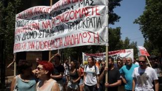 Νωρίτερα πορεία πραγματοποίησαν μέλη του ΣΥΡΙΖΑ-Προοδευτική Συμμαχία με κατάληξη το υπουργείο Μακεδονίας Θράκης.