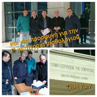 Καταθέσαμε σήμερα ως ΠΟΣΥΦΥ άλλη μια προσφυγή στο Διοικητικό Πρωτοδικείο Αθηνών με τους Νομικούς μας Συμβούλους Λάγο Γεώργιο και Μισαηλίδη Ιωαννη, αυτή τη φορά για τους συναδέλφους ανακριτικους βαθμοφόρους που έχουν ενταχθεί αδίκως και με περίσσεια προχειρότητα στην Γ' κατηγορία του νέου μισθολογίου.