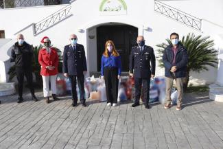 Τέλος, στην Καρδίτσα, ο Διευθυντής της Διεύθυνσης Αστυνομίας Καρδίτσας, Ταξίαρχος κ. Θωμάς Καρανάσιος, συνοδευόμενος από αντιπροσωπεία αστυνομικών, παρέδωσε τα συγκεντρωθέντα είδη για την ενίσχυση του Κοινωνικού Παντοπωλείου του Δήμου Καρδίτσας.