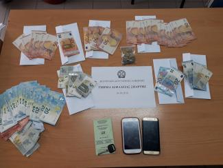 Σε έρευνα που πραγματοποιήθηκε στην οικία του 30χρονου, εχτές (19.10.2018) το πρωί στην Αρτέμιδα Αττικής, από αστυνομικούς του Τμήματος Ασφαλείας Αρτέμιδος- Σπάτων Αττικής, βρέθηκε και κατασχέθηκε το χρηματικό ποσό των -1.270- ευρώ.