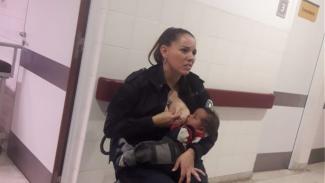 Η είδηση προκάλεσε ενθουσιασμό, ενώ συνάδελφός της πόσταρε στο Facebook φωτογραφία της αστυνομικού να ταΐζει το μωρό.