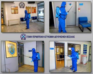 Από τη Γενική Αστυνομική Περιφερειακή Διεύθυνση Θεσσαλίας ανακοινώνεται ότι στο πλαίσιο των κλιμακούμενων παρεμβάσεών της για την ενίσχυση της πρόληψης της εξάπλωσης του νέου ιού του κορωνοϊού, πέραν των καθημερινών μέτρων καθαριότητας που λαμβάνονται, θα διενεργηθούν από εξειδικευμένα συνεργεία καθαρισμού επιπρόσθετες απολυμάνσεις όλων των χώρων των Υπηρεσιών και οχημάτων των Διευθύνσεων Αστυνομίας δικαιοδοσίας της.