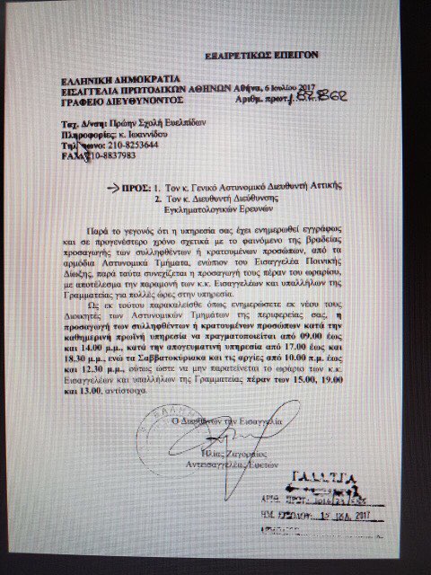 Παράπονα για τις προσαγωγές στα δικαστήρια της πρώην Σχολής Ευελπίδων εκφράζουν με έγγραφό τους οι Εισαγγελείς, που ζητούν αυτές να γίνονται σε συγκεκριμένο ωράριο, προκειμένου να μην μένουν περισσότερες ώρες στα δικαστήρια.