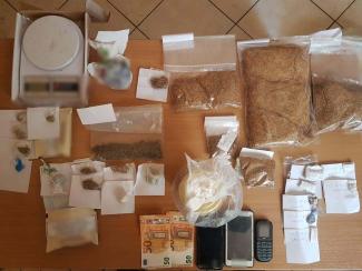 - 2 συσκευασίες που περιείχαν ακατέργαστη κάνναβη αναμεμειγμένη με καπνό, συνολικού βάρους -2,47- γραμμαρίων,