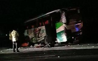 Δώδεκα άνθρωποι σκοτώθηκαν και δεκάδες τραυματίστηκαν σήμερα σε καραμπόλα που προκλήθηκε όταν ένας επιβάτης σε πούλμαν προσπάθησε να θέσει υπό τον έλεγχό του το όχημα, αρπάζοντας το τιμόνι από τον οδηγό του.