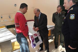 Τον κ. Γενικό Γραμματέα συνόδευαν ο Προϊστάμενος Επιτελείου του Αρχηγείου της Ελληνικής Αστυνομίας, Αντιστράτηγος Κωνσταντίνος Τσουβάλας και ο Διευθυντής της Διεύθυνσης Υγειονομικού, Υποστράτηγος (ΥΓ) Πλάτωνας Ζαφείρης, ενώ τους υποδέχθηκε ο Διοικητής του Νοσοκομείου, Ταξίαρχος (ΥΓ) Γεώργιος Σιάπκας.