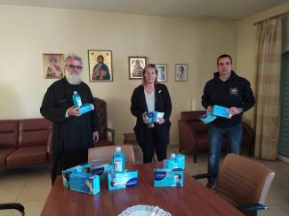 Την Δευτέρα 27 Απριλίου 2020 αντιπροσωπεία μελών του Δ.Σ. της Τοπικής Διοίκησης Λάρισας της Διεθνούς Ένωσης Αστυνομικών, επισκέφθηκε το ΄΄Κρίκκειο΄΄ Εκκλησιαστικό ορφανοτροφείο Λάρισας, όπου προσέφερε τριακόσιες (300) προστατευτικές μάσκες, πεντακόσια (500) γάντια μίας χρήσεως και αντισηπτικά για την προστασία τον έντεκα (11) διαμενόντων κοριτσιών και του προσωπικού. Την Τρίτη 28 Απριλίου 2020 ο Πρόεδρος της Τοπικής κ. Αχιλλέας Καλαμπούκας επισκέφθηκε το γηροκομείο ΄΄Παναγία Αρμενιώτισσα΄΄ όπου παρέδωσε αντίστοιχο αριθμό υγειονομικού υλικού για την προφύλαξη από τον ιό covid-19 της ιδιαίτερα ευπαθούς ομάδας των ηλικιωμένων συνανθρώπων μας. Από τον πάτερ Τιμόθεο και τον πατέρα Κωνσταντίνο αντίστοιχα, έγινε ενημέρωση για την λειτουργία των ιδρυμάτων, ενώ από την πλευρά μας δηλώσαμε αρωγοί στο μέτρο του δυνατού σε κάθε ενέργεια τους, καθώς οι αρχές που πρεσβεύουν την Ένωση μας είναι αλληλεγγύη- αλληλοβοήθεια-αλληλοσεβασμός.