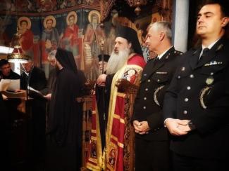 Προηγήθηκε ο πανηγυρικός εσπερινός προεξάρχοντος του μητροπολίτη Σταγών κ. Θεοκλήτου, ενώ παρέστη και ο μητροπολίτης Αυλώνος κ. Χριστόδουλος. Στην συνέχεια τελέστηκε η ακολουθία της ενθρόνισης, κατά την οποία ο κ. Θεόκλητος παρέδωσε στον νέο ηγούμενο τον ηγουμενικό σταυρό, την ηγουμενική ράβδο και τον ηγουμενικό μανδύα.