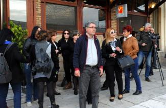 Επίσης στο δικαστήριο είναι και η πρόεδρος της ΕΣΗΕΑ Μαρία Αντωνιάδου.