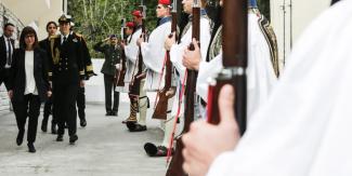 «Οι εύζωνες της Προεδρικής Φρουράς είναι οι θεματοφύλακες της ιστορικής μας μνήμης. Συνδέουν το παρελθόν με το παρόν και το μέλλον μας. Την κληρονομιά μας, με τη δυναμική πορεία μας, προς το αύριο» τόνισε η Πρόεδρος της Δημοκρατίας Κατερίνα Σακελλαροπούλου κατά την τελετή εορτασμού του Προστάτη Αγίου της Προεδρικής, νεομάρτυρος Αγίου Γεωργίου εξ Ιωαννίνων.
