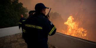 Σύμφωνα με την Πυροσβεστική η φωτιά καίει μέσα σε ρέμα, με την πρόσβαση στο σημείο να είναι δύσκολη.