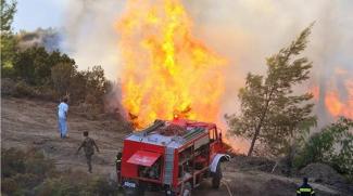 Η φωτιά εκδηλώθηκε σε δασική έκταση και η προσπάθεια των πυροσβεστών επικεντρώνεται στη δημιουργία αντιπυρικών ζωνών, προκειμένου να την περιορίσουν σε ένα σημείο.