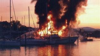Δίπλα στο σκάφος που φλέγεται βρίσκονται κι άλλα αγκυροβολημένα, προς τα οποία όμως δεν υπάρχει κίνδυνος επέκτασης.