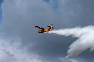 Στο σημείο επιχειρούν 12 πυροσβέστες με πέντε οχήματα και δύο αεροσκάφη.