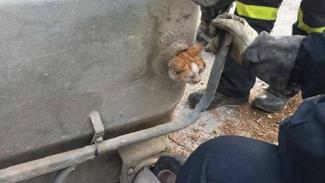 Επιχείρηση έστησαν πυροσβέστες για να απεγκλωβίσουν μία γάτα από κάδο απορριμμάτων.
