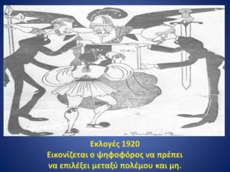 Την 1η Νοεμβρίου 1920 η Ενωμένη Αντιπολίτευση κέρδισε τις εκλογές, σε μια στιγμή που η Ελλάδα πραγμάτωνε τους εθνικούς της πόθους με τη βοήθεια των Συμμάχων της, με δύο κύριες εξαγγελίες: πρώτον, τον τερματισμό του πολέμου και την επιστροφή στην πατρίδα των στρατιωτών της και δεύτερον, την επαναφορά του θρόνου. Την πρώτη δεν την τήρησε. Τη δεύτερη έσπευσε να την υλοποιήσει άμεσα με τη διενέργεια του δημοψηφίσματος της 5ης Δεκεμβρίου του 1920, παρά τις αυστηρές προειδοποιήσεις των Συμμάχων να μην επανέλθει ο βασιλιάς Κωνσταντίνος. Τη συνέχεια την γνωρίζουμε όλοι. Η Ελλάδα έχασε τη συμμαχική υποστήριξη και η καταστροφή της ήταν πια ζήτημα χρόνου.