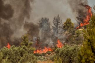Στο σημείο επιχειρούν 15 πυροσβέστες με επτά οχήματα, οι οποίοι προσπαθούν να θέσουν υπό έλεγχο την φωτιά.