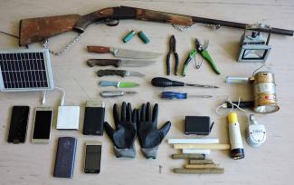 «Από τις έρευνες που πραγματοποιήθηκαν στην ευρύτερη περιοχή του εντοπισμού του δράστη καθώς και στην κατοχή του βρέθηκαν από του αστυνομικούς μεταξύ άλλων, οπλισμένο κυνηγητικό μονόκαννο όπλο, δύο φυσίγγια, μαχαίρια, σουγιάδες καθώς και εξοπλισμός διαβίωσης στην ύπαιθρο.