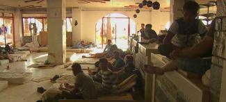 Χωρίς νερό, τροφή και στέγη διαμένουν προσωρινά σε ένα εγκαταλελειμμένο ξενοδοχείο του νησιού. Η δημοσιογράφος, που καλύπτει το ρεπορτάζ, μάλιστα ζητά από τον εικονολήπτη να δείξει που ακριβώς κοιμούνται αυτοί οι άνθρωποι.