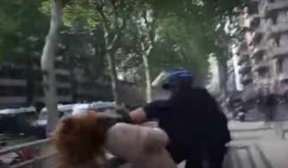 Αντιδράσεις προκαλεί στη Γαλλία η βίαιη συμπεριφορά ενός πάνοπλου αστυνομικού των δυνάμεων καταστολής εις βάρος μιας γυναίκας.