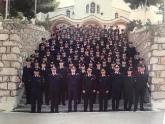 Στις φωτογραφίες είναι ο 1ος από τους δύο λόχους που φοίτησαν στη σχολή της Ελληνικής Αστυνομίας στην Λ. Μεσογείων την χρονιά εκείνη μαζί με τους επικεφαλείς και τον αρχηγό της σχολής, έξω από τον Ιερό Ναό Παμμεγίστων Ταξιαρχών."