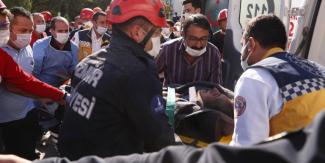 Μια γυναίκα και τα τρία από τα παιδιά της ανασύρθηκαν ζωντανοί από τα χαλάσματα ενός κτιρίου που κατέρρευσε στη Σμύρνη μετά το σεισμό στη Σαμο.