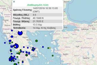 Σεισμική δόνηση μεγέθους 4,6 βαθμών της κλίμακας Ρίχτερ σημειώθηκε πριν λίγο στη Κοζάνη.