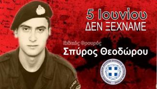 Γιατί στις 5 Ιουνίου 2009 άφησε την τελευταία του πνοή ο Σπύρος Θεοδώρου. Ο Ειδικός Φρουρός που στις 3 Απριλίου 2009, στη συμβολή των οδών Σκιάθου και Σκόκου στην Κυψέλη πυροβολήθηκε κατά τη διάρκεια ελέγχου σε ύποπτο άτομο από τα νώτα.