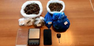 Στη συνέχεια διενεργήθηκε έρευνα σε οικία την οποία χρησιμοποιούσε ο ένας ημεδαπός ως χώρο αποθήκευσης ναρκωτικών ουσιών (καβάντζα) όπου βρέθηκαν και κατασχέθηκαν, 3 αυτοσχέδιες συσκευασίες περιέχουσες συνολική ποσότητα κάνναβης 122,5 γραμμαρίων, ηλεκτρονική ζυγαριά ακριβείας και το χρηματικό ποσό των 50 ευρώ.
