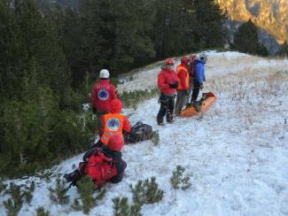 Στόχος είναι να μεταφερθεί ο Γάλλος ορειβάτης με φορείο στο καταφύγιο Πετρόστρουγκας, το οποίο βρίσκεται σε υψόμετρο 1240 μέτρων.