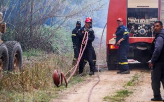 Σύμφωνα με την Πυροσβεστική, καίγονται ξερά χόρτα και χαμηλή βλάστηση.