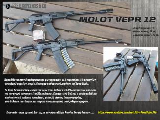 Το Vepr 12 είναι σύμφωνα με τον νόμο περί όπλων 2168/93, κυνηγετικό όπλο και για την αγορά του απαιτείται Άδεια Αγοράς Κυνηγετικού Όπλου, η οποία εκδίδεται από τα τοπικά τμήματα ασφαλείας, με απλή αίτηση, 2 φωτογραφίες, φωτοαντίγραφο του δελτίου ταυτότητας και ιατρικό πιστοποιητικό, εντός ολίγων ημερών. Δείτε βίντεο στο σύνδεσμο παρακάτω: