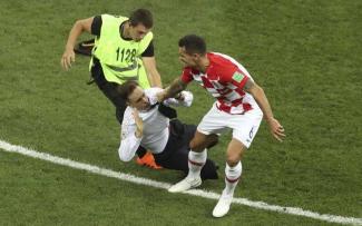 Το ρωσικό ακτιβιστικό συγκρότημα πανκ «Pussy Riot» ανέλαβε την ευθύνη για την είσοδο στον αγωνιστικό χώρο στη διάρκεια του τελικού του Παγκοσμίου Κυπέλλου που διεξήχθη σήμερα στη Μόσχα, με αποτέλεσμα μια πολύ σύντομη διακοπή του αγώνα.