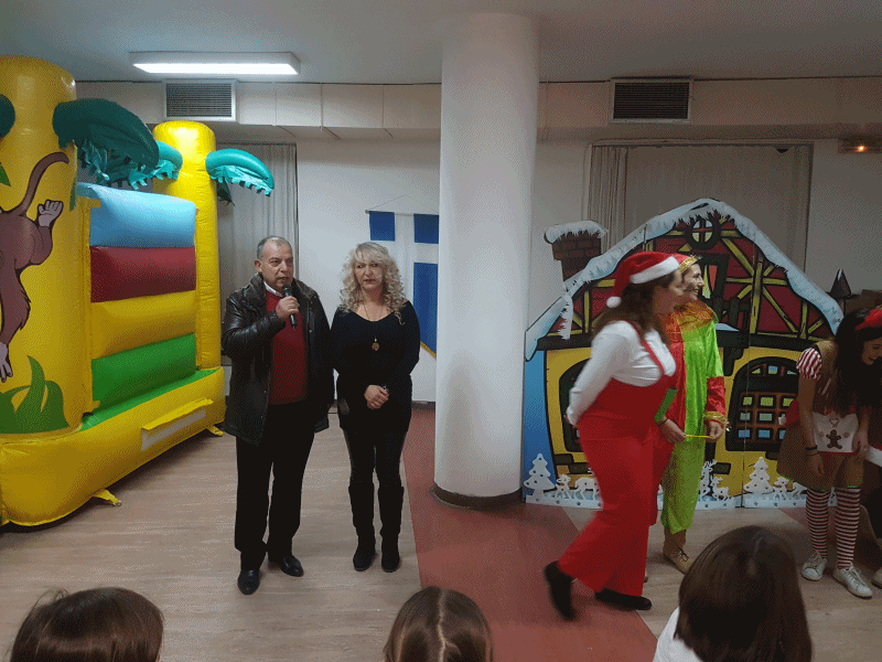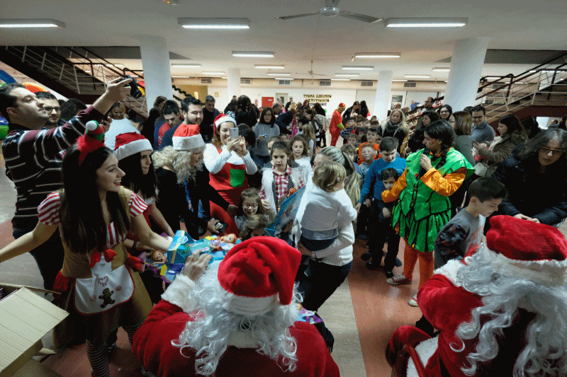 Στο τελείωμα της βραδιάς, φωτογραφήθηκαν με τον Άγιο Βασίλη που τους μοίρασε αναμνηστικά δώρα και σοκολάτες.