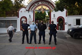 Αρκετοί Αστυνομικοί του Αστυνομικού Τμήματος Φαιστού με επικεφαλής το Διοικητή και τον Υποδιοικητή του Τμήματος, βρισκόταν από την είσοδο του δρόμου επί της οδού Μοίρες – Τυμπάκι, έως και μέσα στο Μοναστήρι, όπου φρόντιζαν την «τάξη» τόσο των οδηγών αυτοκινήτων, όσο και των πιστών…