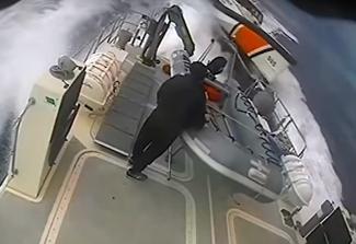 Στο βίντεο φαίνεται η τουρκική ακταιωρός να προσεγγίζει με πολύ μεγάλη ταχύτητα στην πρύμνη του ελληνικού σκάφους, σε απόσταση μικρότερη του ενός μέτρου και -φαίνεται- να «παίζει» στα απόνερα του ελληνικού σκάφους, κάνοντας εξαιρετικά επικίνδυνους χειρισμούς, μέχρι την ώρα που κάνει αριστερή στροφή και απομακρύνεται από αυτό!