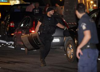 Ωστόσο, ο συναγερμός κινητοποίησε άμεσα τις Ειδικές Δυνάμεις της ΕΛ.ΑΣ. που έφτασαν στο κεντρικό ξενοδοχείο και καταδίωξαν τους ληστές, οι οποίοι προσπάθησαν να σπάσουν τον κλοιό πυροβολώντας επανειλημμένα εναντίον τους με τα Καλάσνικοφ. Η ανταλλαγή πυροβολισμών έγινε μπροστά σε δεκάδες έντρομους τουρίστες και παιδιά που συμμετείχαν στη μαθητική εκδήλωση στο χώρο του μπαρ, οι οποίοι προσπαθούσαν να καλυφθούν όπου έβρισκαν!
