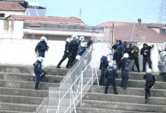 Αμέσως μετά ωστόσο οι οπαδοί του Αιγάλεω κινήθηκαν εναντίον αυτών των Τρικάλων. Πήδηξαν τα κιγκλιδώματα και βρέθηκαν στη «νεκρή ζώνη». Υπήρξε κινητοποίηση από τους άντρες των ΜΑΤ και κυνηγητό, με αποτέλεσμα δύο τουλάχιστον εξ αυτών να πέσουν στις τσιμεντένιες εξέδρες και να τραυματιστούν, ευτυχώς όχι σοβαρά.