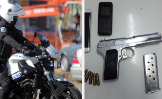 Σε έλεγχο που διενεργήθηκε στο όχημα, βρέθηκαν και κατασχέθηκαν ένα πυροβόλο όπλο (πιστόλι) με γεμιστήρα και οκτώ φυσίγγια, ένα αλεξίσφαιρο γιλέκο, καθώς και δύο κινητά τηλέφωνα.