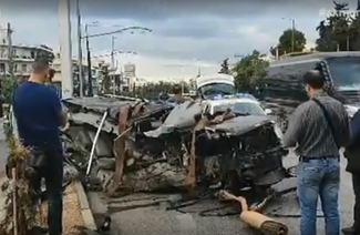 Το ΙΧ έγινε μια άμορφη μάζα σιδερικών, στο οδόστρωμα εκσφενδονίστηκαν κομμάτια από το όχημα, όμως για καλή τύχη του οδηγού η καμπίνα του έμεινε άθικτη και κατάφερε να βγει ζωντανός χωρίς εμφανείς τραυματισμούς.