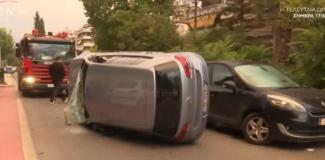 Όπως βλέπετε και από τα πλάνα που μεταδόθηκαν στην εκπομπή «Ώρα Ελλάδος», στην τηλεόραση του OPEN αυτοκίνητο χτύπησε με δύναμη σε παρκαρισμένα οχήματα και σχεδόν τούμπαρε.