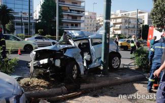 Το όχημα, όπως μετέδωσε νωρίτερα η ΕΡΤ, αναποδογύρισε και καρφώθηκε στη συνέχεια σε κολόνα.