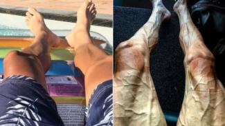"Μετά από 16 ετάπ νομίζω ότι τα πόδια μου δείχνουν λίγο κουρασμένα" έγραψε. Και η εικόνα είναι ακόμη πιο σοκαριστική αν τη συγκρίνουμε με τα πόδια του πριν το γύρο της Γαλλίας.