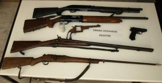 Ειδικότερα, οι αστυνομικοί αξιοποιώντας πληροφορία που είχαν, πραγματοποίησαν έρευνα στο σπίτι του 45χρονου, ο οποίος απουσίαζε, όπου βρήκαν συνολικά και κατάσχεσαν, ένα πολεμικό τυφέκιο, τρία κυνηγητικά όπλα, τα οποία κατείχε παράνομα, ένα πιστόλι, ένα παλαιό περίστροφο καθώς και πυρίτιδα, συνολικού βάρους 100 γραμμαρίων.
