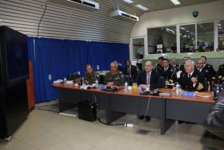 Συνοδευόμενος από τον Α/ΓΕΕΘΑ ,τον Α/ΓΕΝ και τον Αρχηγό Στόλου, ο Δένδιας είχε πλήρη ενημέρωση και εικόνα για ότι συμβαίνει στην περιοχή ευθύνης του ΣΔΑΜ. Η οποία ειδικά αυτή τη περίοδο είναι μια από τις πιο “καυτές” περιοχές του πλανήτη, γεωπολιτικά και διπλωματικά.