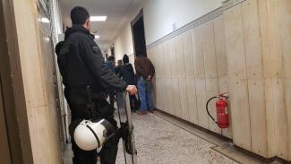 Τα δικαστήρια βρίσκονται υπό αστυνομικό κλοιό με ισχυρές δυνάμεις να επιτηρούν το χώρο. Έξω από το δικαστικό μέγαρο έχει αναρτηθεί πανό συμπαράστασης ενώ έχει συγκεντρωθει και μικρή - για την ώρα - ομάδα ατόμων.