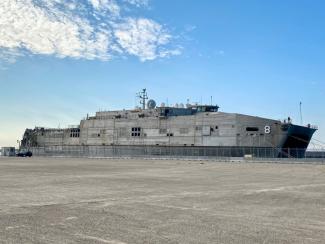 Το μεταγωγικό πλοίο USNS “YUMA” έχει μήκος μόνο 103 μέτρα αλλά είναι ένα επιβλητικό υπερσύγχρονο καταμαράν υποστήριξης και ταχείας μεταφοράς 600 τόνων φορτίου και 312 στρατιωτών και πολιτών.
