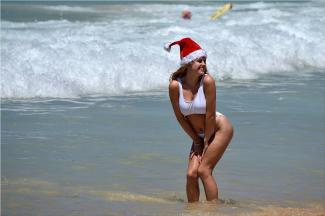 Τις ασυνήθιστα υψηλές για την εποχή θερμοκρασίες εκμεταλλεύτηκαν εκατοντάδες Αυστραλοί για να κάνουν Χριστούγεννα με μπικίνι.
