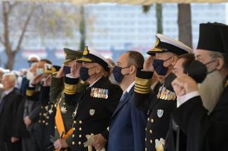 Όπως ανακοινώθηκε σχετικά, στην εκδήλωση παρευρέθησαν η πολιτική ηγεσία του Υπουργείου Ναυτιλίας και Νησιωτικής Πολιτικής, μέλη της κυβέρνησης, βουλευτές, ο αρχηγός ΓΕΕΘΑ, στρατηγός Κωνσταντίνος Φλώρος, ο αρχηγός ΓΕΝ, αντιναύαρχος Στυλιανός Πετράκης, ο αρχηγός ΓΕΑ, αντιπτέραρχος Θεμιστοκλής Μπουρολιάς και οι αρχηγοί των Σωμάτων Ασφαλείας, γενικοί γραμματείς υπουργείων καθώς και οι τοπικές αρχές της Εκκλησίας και της Τοπικής Αυτοδιοίκησης.